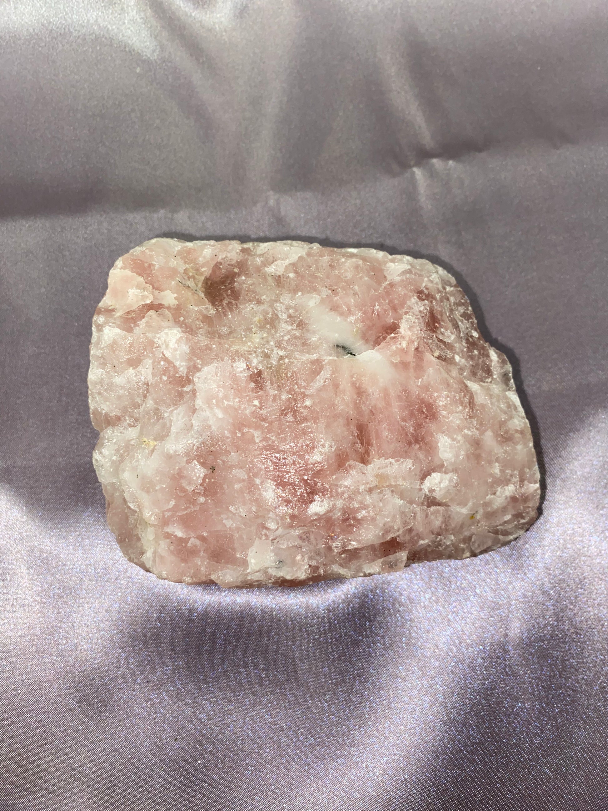 Rose quartz calms and reassures and comforts in times of grief. It aids in self-love, promotes love, inner friendship, aids in peace, and inner healing. It is a great stone for meditation. Lay down, place it on your heart and just meditate.