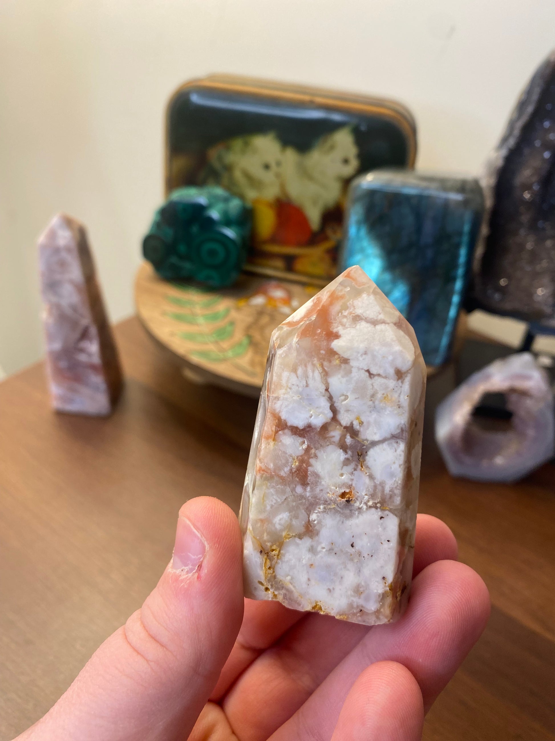 Flower agate is a great stone for opening up inspiration, establishing inner peace, and much more. It is great for reaching your highest potential as well as protecting us from self-doubt or even fear.